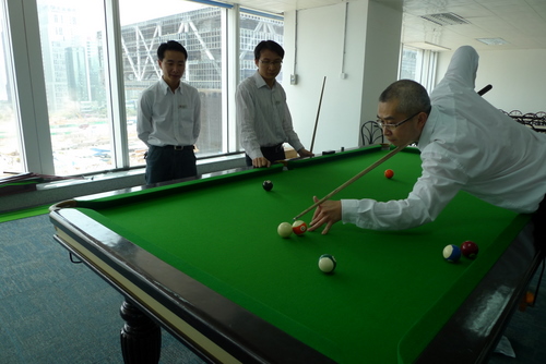 桌球比赛分为英式和美式,共有26人报名参赛。美式桌球报名者偏多,当然少不了高手。参赛选手为大家奉上了一场又一场精彩的比赛,让观看者们一饱眼福。几个回合下来,争夺冠军的强手相遇了,一场势均力敌的对决上演,每次出杆的精准,总是赢来阵阵喝彩,特别是英式桌球的冠军争夺在行政人事部副经理梁秀文与行政人事部杨春灵之间,两人分数不相上下,桌球台上仅剩一颗黑球来决定他们的胜负,进球的角度复杂,难度大。结果梁经理以一杆超水准的出击,黑球完美入袋,让观看的人叹服的鼓掌与尖叫。美式桌球的冠军争夺在行政人事部经理王伟敬与行政人事部杨春灵之间进行,首先王经理拿下一局,紧接着杨春灵拿下第二局,最后双方进入紧张激烈的决胜局,双方展现出优良的技术魅力,最终杨春灵取得比赛胜利。