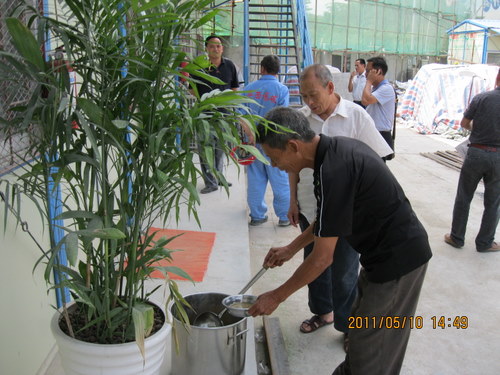 深圳的五月烈日炎炎,项目部所有人员在如此恶劣的环境下,抱着积极的态度开展工作,忙得像热锅上的蚂蚁,看着大家汗流浃背的身影,值得敬佩。公司对大家的健康很重视,在高温期间熬好绿豆汤由行政人事部同事亲自送到工地现场,为施工工人和管理者消渴解暑,让所有参与工程的建设者都感受到荣超地产无微不至的关怀。