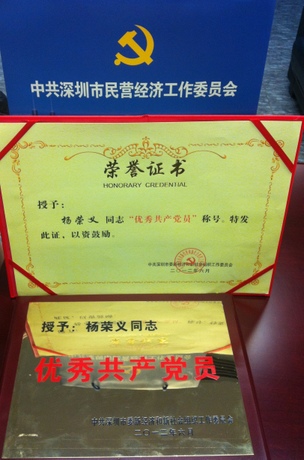 让我们再次祝贺杨荣义同志荣获“深圳市优秀党员”称号!