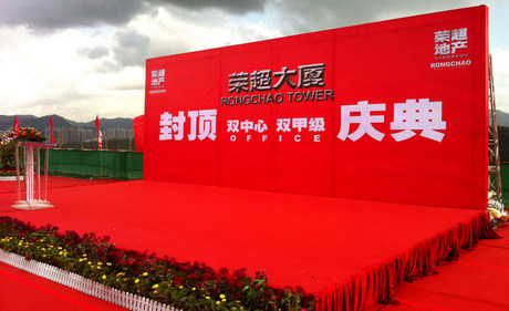 2012年8月25日,2012年9月3日,荣超地产2012年两大倾力之作,位于龙岗中心区的荣超英隆大厦以及福田中心区的荣超大厦主体结构全面封顶,来自企业客户、合作单位、业内人士的嘉宾以及荣超地产员工欢聚一起,共同见证了两项目的封顶仪式盛典。这是荣超地产在龙岗中心区的首个甲级写字楼及深圳福田中心区的第七座甲级写字楼,一直以来,荣超地产在业界辉煌的历史和在商业地产领域卓越的表现就深得业界的认同,如今两座写字楼的同步封顶,完美亮相,为深圳地产界添加一段盛事佳话,也再次凸显了荣超地产作为深圳专业写字楼开发商,领衔城市中心的卓著地位。